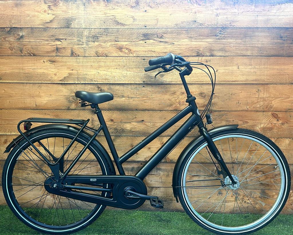 Hoewel de fiets gebruikssporen heeft, is deze technisch volledig gereviseerd en zijn versleten onderdelen vervangen door nieuwe