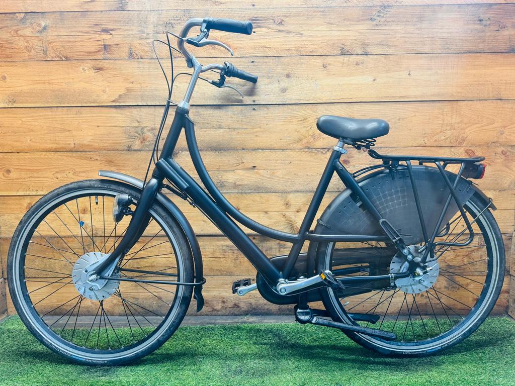 Hoewel de fiets gebruikssporen heeft, is deze technisch volledig gereviseerd en zijn versleten onderdelen vervangen door nieuwe