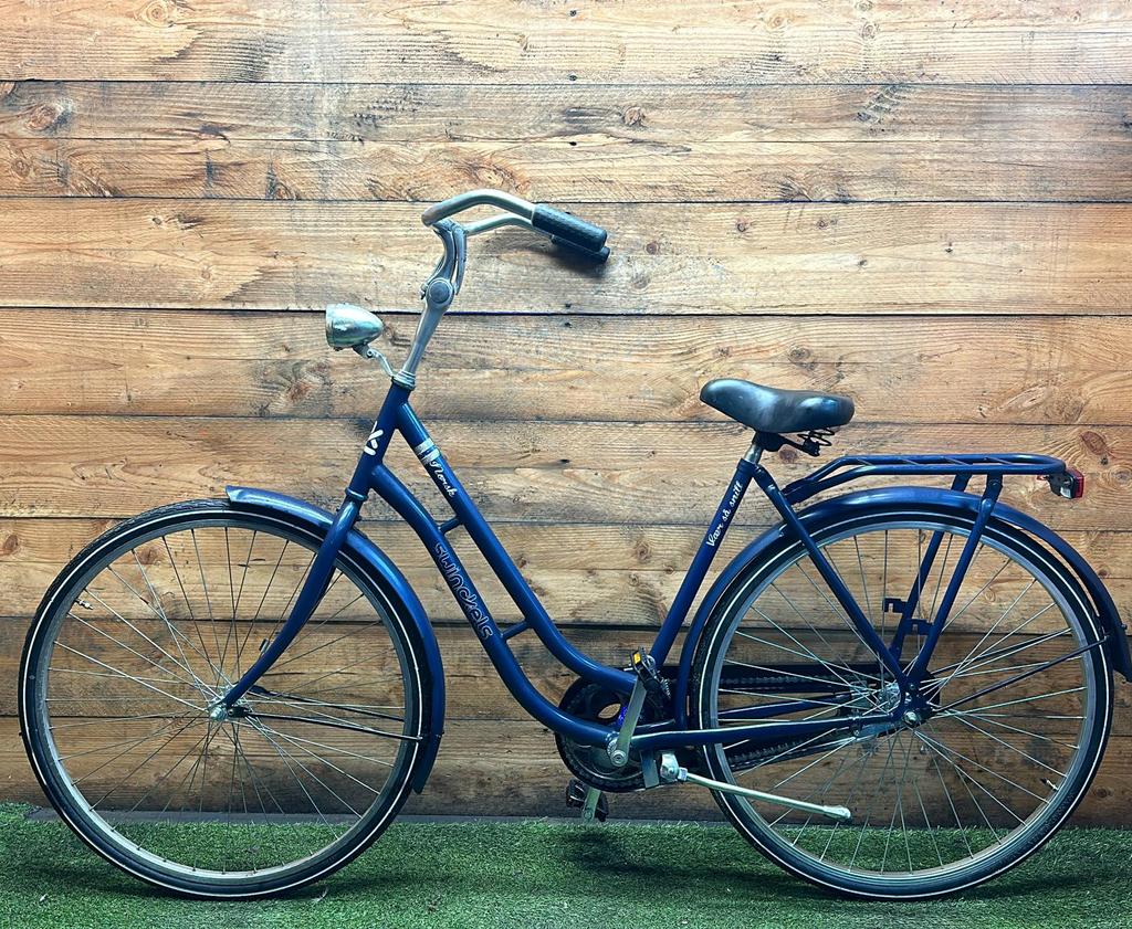 Hoewel de fiets gebruikssporen heeft, is deze technisch volledig gereviseerd en zijn versleten onderdelen vervangen door nieuwe
