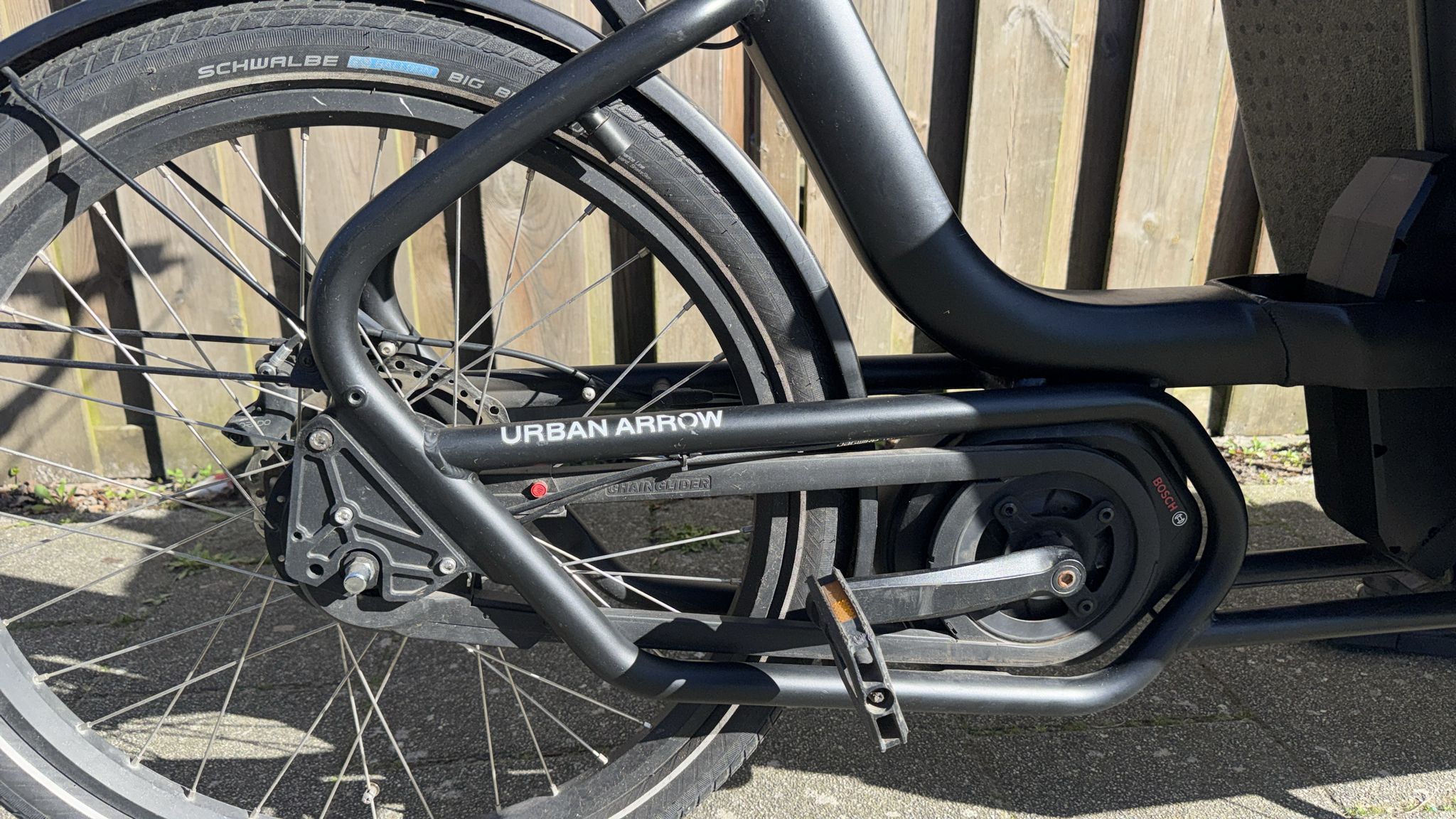 Goed onderhouden Urban Arrow Family bakfiets, perfect voor het veilig en comfortabel vervoeren van kinderen of boodschappen.